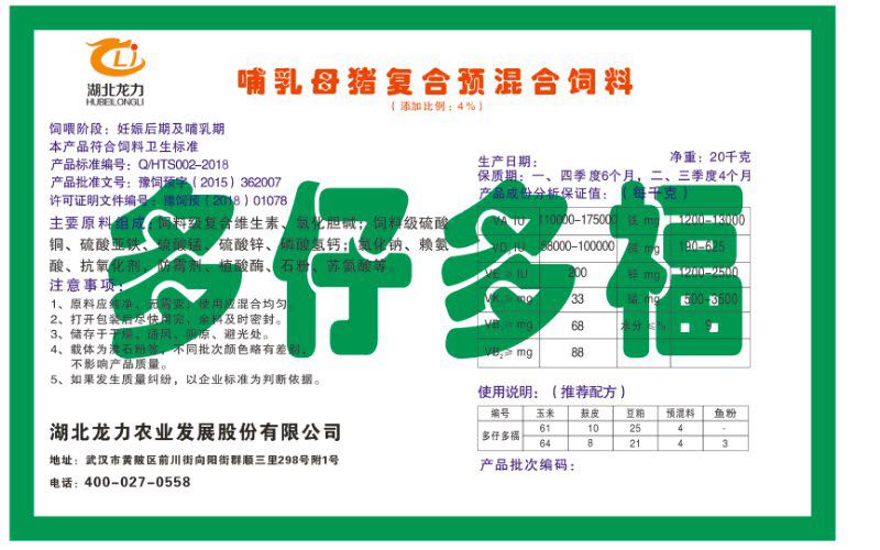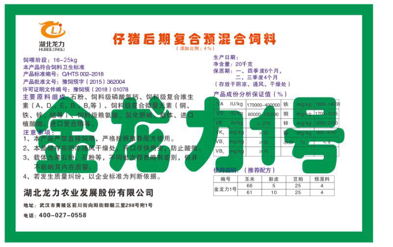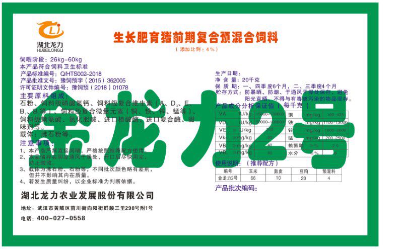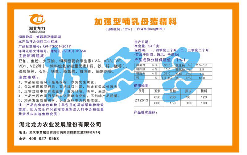 湖北龍力農(nóng)業(yè)發(fā)展股份有限公司坐落于武漢市黃陂區(qū)前川街向陽街群順三里298號附1號。公司成立于2014年6月,公司自成立以來把“創(chuàng)全球最大養(yǎng)豬綜合服務(wù)”為企業(yè)愿景。致力于打造教保料品牌”作為公司發(fā)展的明確目標(biāo)。公司一直致力于豬營養(yǎng)的研究和開發(fā),積極與國內(nèi)外高校和科研機構(gòu)合作,推廣養(yǎng)豬技術(shù)、動物營養(yǎng)新概念,向世界農(nóng)牧企業(yè)學(xué)習(xí)與合作。公司采用國內(nèi)先進(jìn)的生產(chǎn)工藝,選擇高精度電子配料秤,高均勻度、無殘留混合機等先進(jìn)設(shè)備....